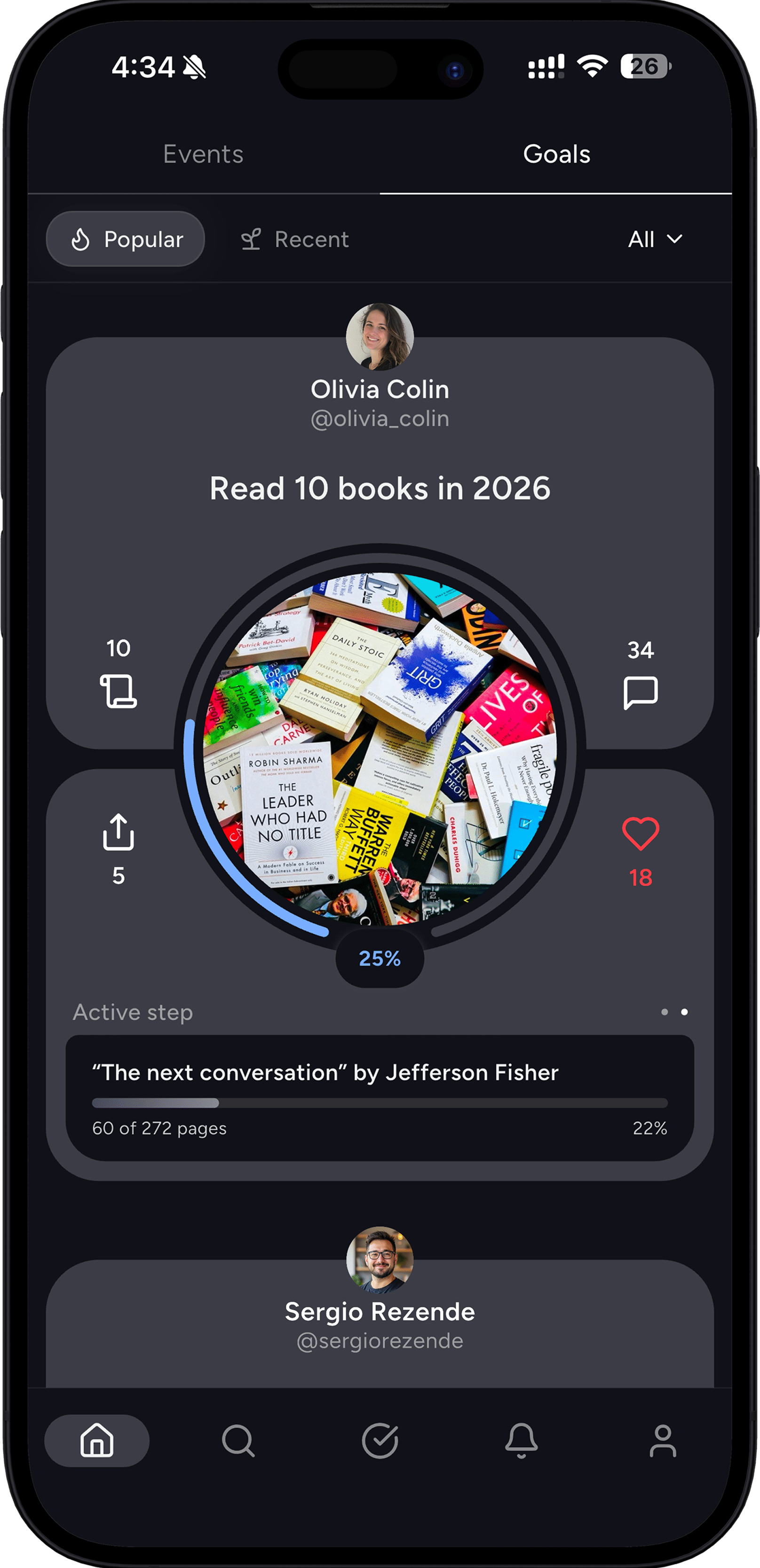FutureYou app keeps me motivated in a way other apps never did. And the biggest difference? It's not boring and has everything I need for not forgetting my goals. I can see how other users are working on their goals, and that community energy really inspires me. It feels like we're all growing together.